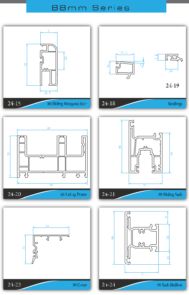 - Cost-conscious design three tracks sliding system with 2.5mm wall thickness. Specially design for heat, sound, termite and pests proof.